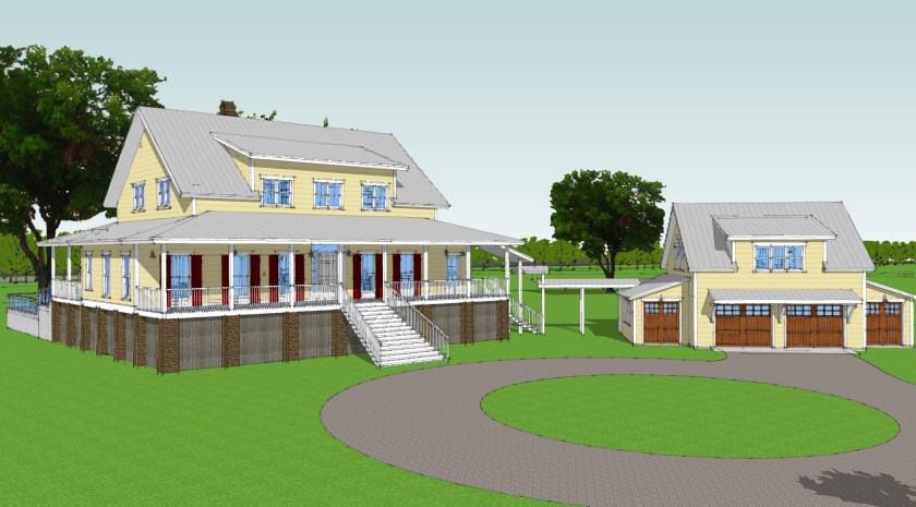 When the couple who own the property began their planning process, they wanted to honor the heritage of the locale. They wanted to build a home that looked like it had been there for a long time, but also would be storm- and flood-resistant. And of course it should make the most of its lovely setting and allow its owners and their young son to enjoy outdoor living and entertaining.